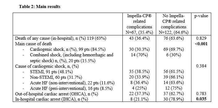 | Peri-procedural Impella-CP® related complications and their impact on in-hospital mortality in patients with cardiogenic shock | ||
